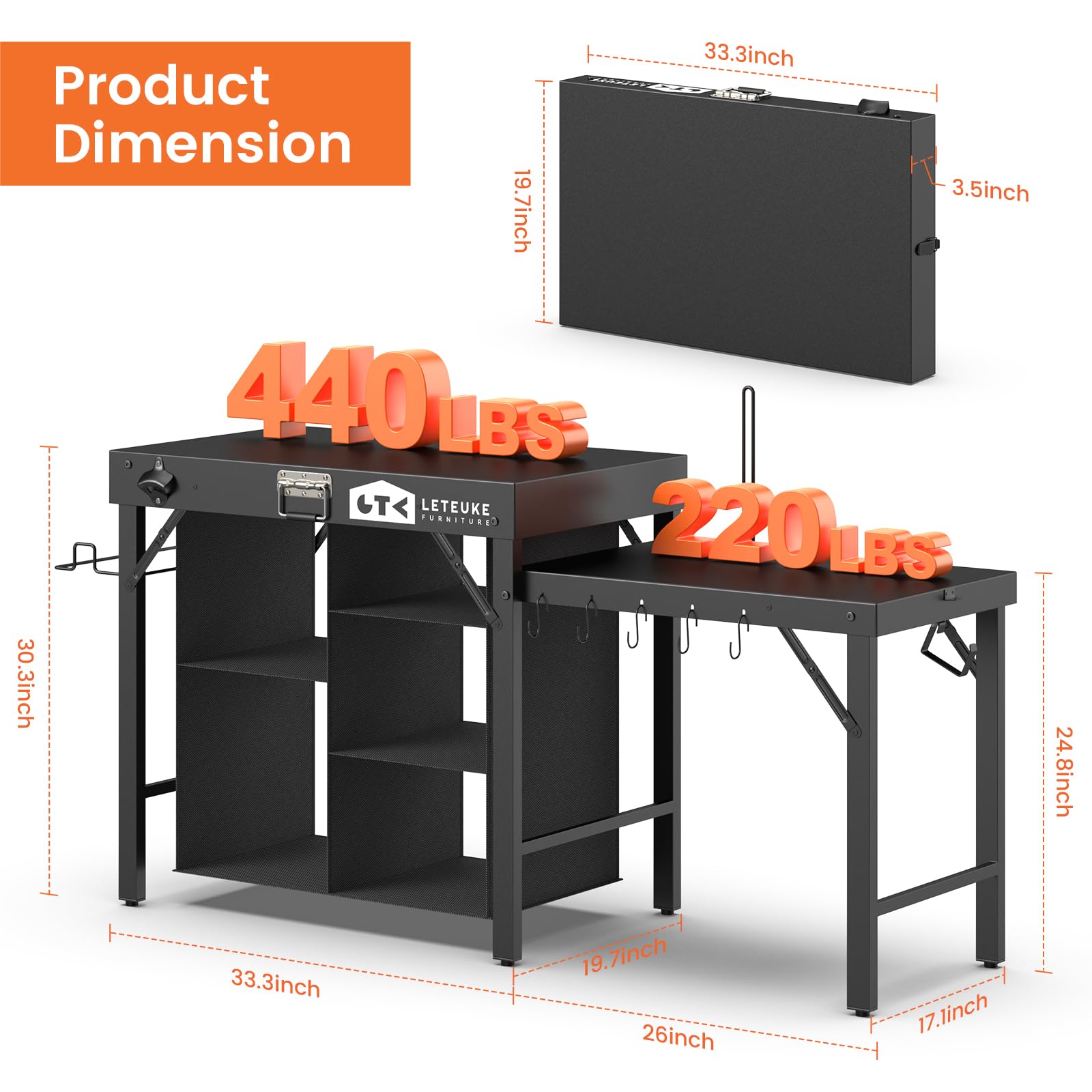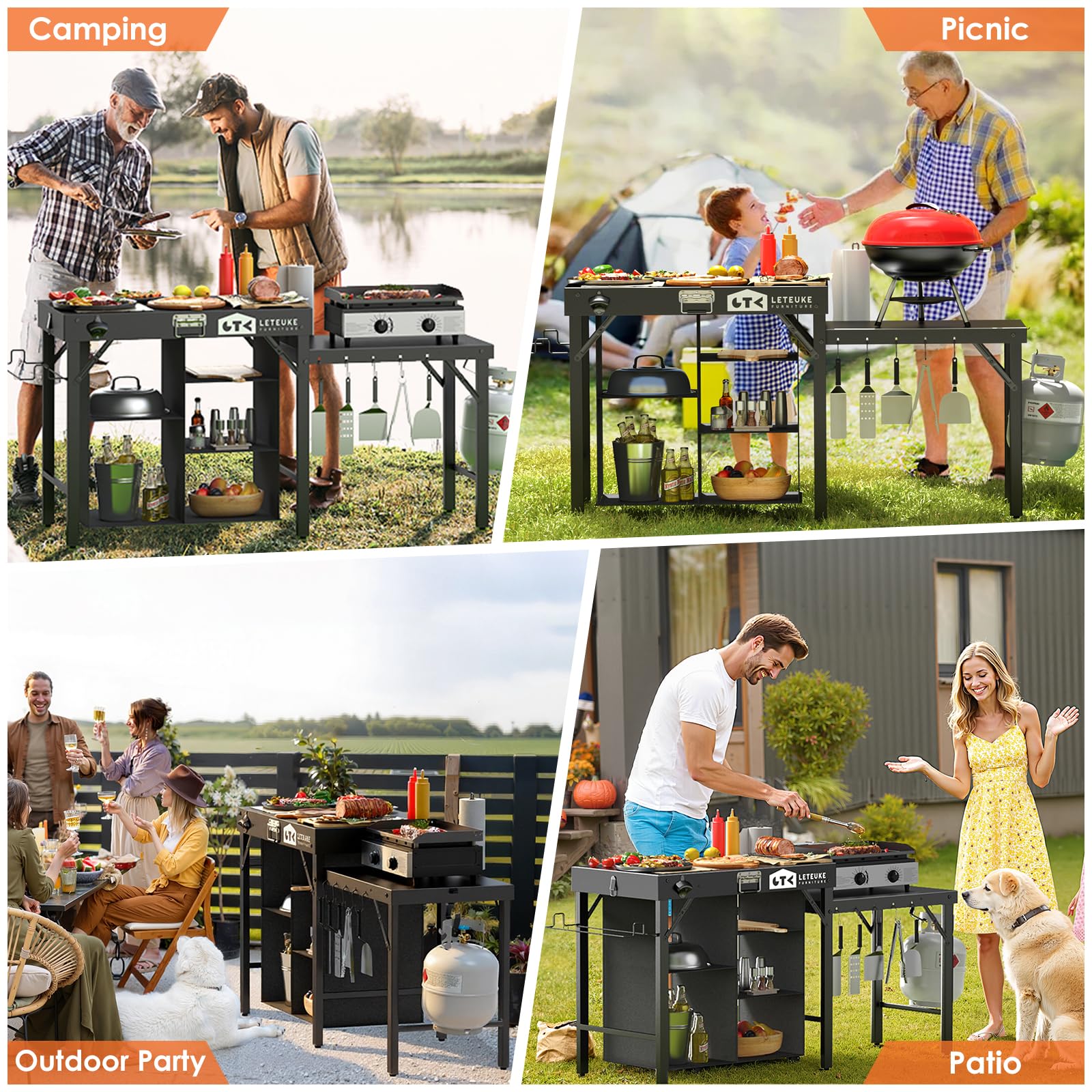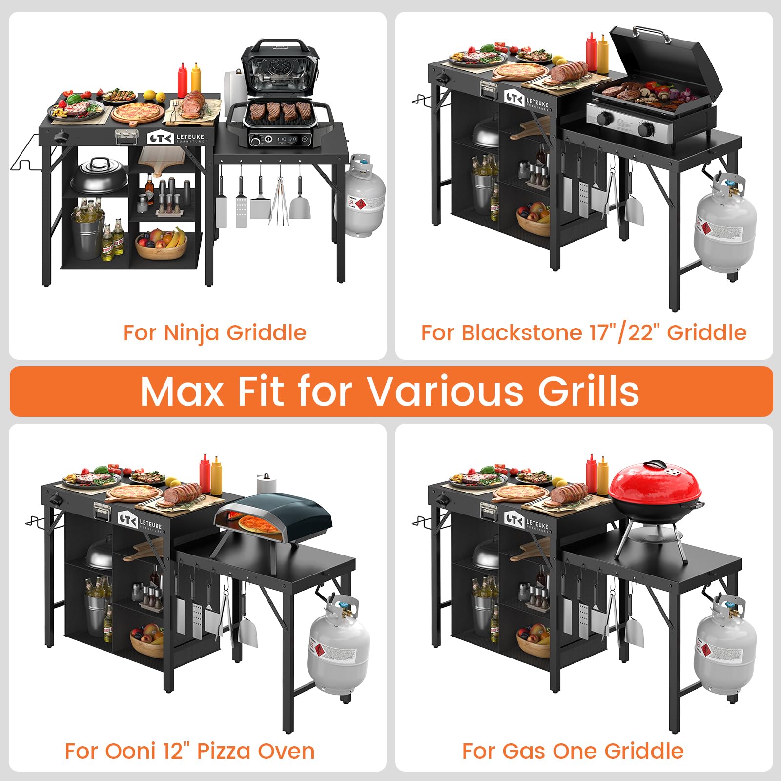 Leteuke Grill Table for Blackstone Griddle, Portable Foldable Grill Table with Storage Fits Ninja, Blackstone Griddle Stand for Outdoor Camping, Picnic, Garden, Patio, Dining, BBQ, Party